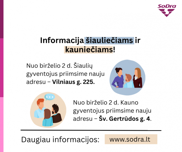 Svarbi informacija Kauno ir Šiaulių gyventojams – nuo birželio 2 d. „Sodros“ klientų priimamieji keliasi į kitas patalpas.