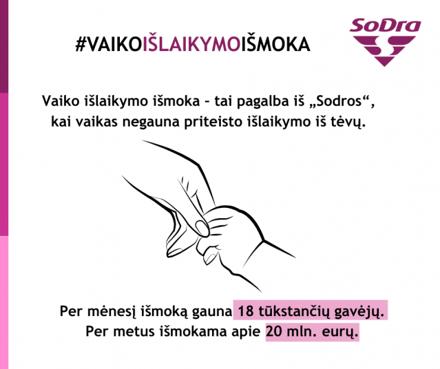 Vaiko išlaikymo išmoka – tai pagalba iš valstybės, kai vaikas negauna priteisto išlaikymo iš tėvų. Kas mėnesį „Sodra“ moka šias išmokas apie 18 tūkstančių gavėjų. Per metus tam skiriama apie 20 milijonų eurų. Vėliau siekiama vaikams skirtas lėšas išieškoti iš tėvų – skolininkų. Žinomas antirekordininkas, kuris nemoka išlaikymo aštuoniems savo vaikams.