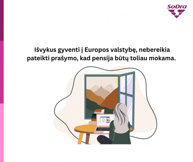 Nuo šiol socialinio draudimo pensijų gavėjams, išvykstantiems gyventi į Europos valstybes, pensijų mokėjimas nebebus stabdomas. Jiems taip pat nebereikės teikti prašymų atnaujinti pensijos mokėjimą. Pakaks kartą per metus pateikti „Sodrai“ dokumentą, patvirtinantį, kad žmogus yra gyvas ir gyvena užsienyje.